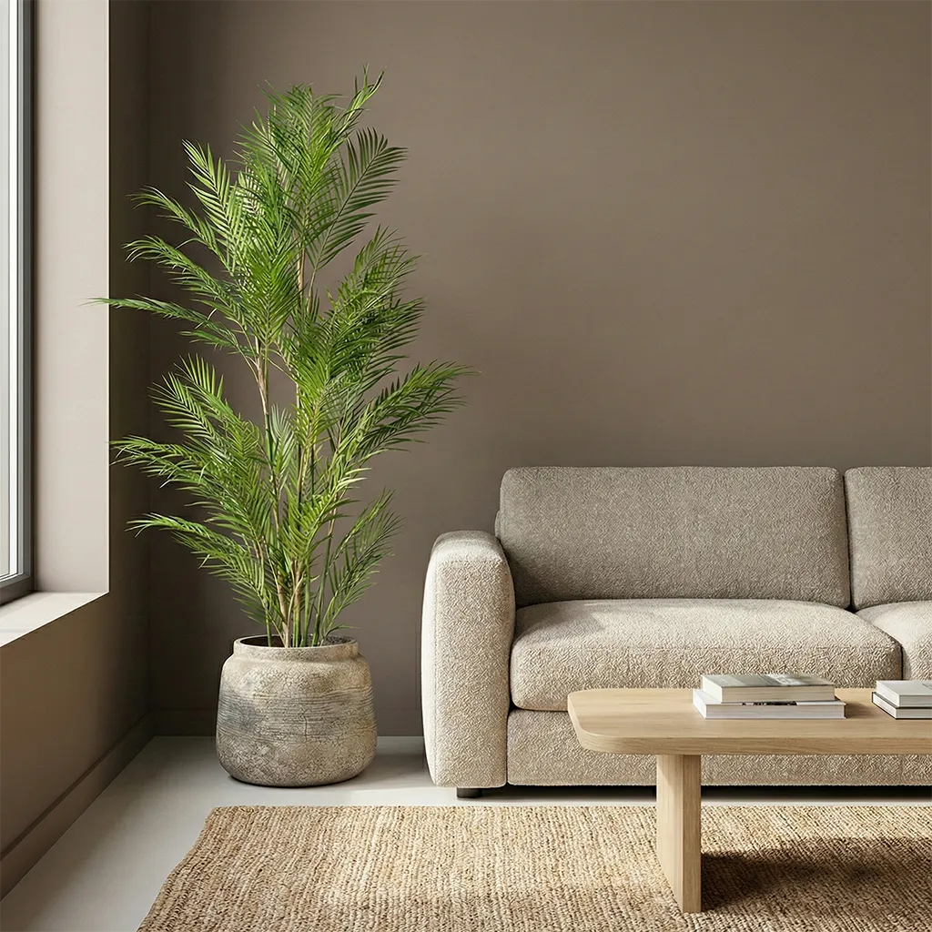 Umělá palma Areka 180 cm má nádherný přírodní vzhled. Je vyrobena z kvalitních umělých materiálů. Palmu lze umístit do dekorativního květináče. Umělé větve mají vynikající detaily a výrazně přirozenou zelenou barvu, která dodává celkovému vzhledu palmy mimořádně realistický vzhled.
